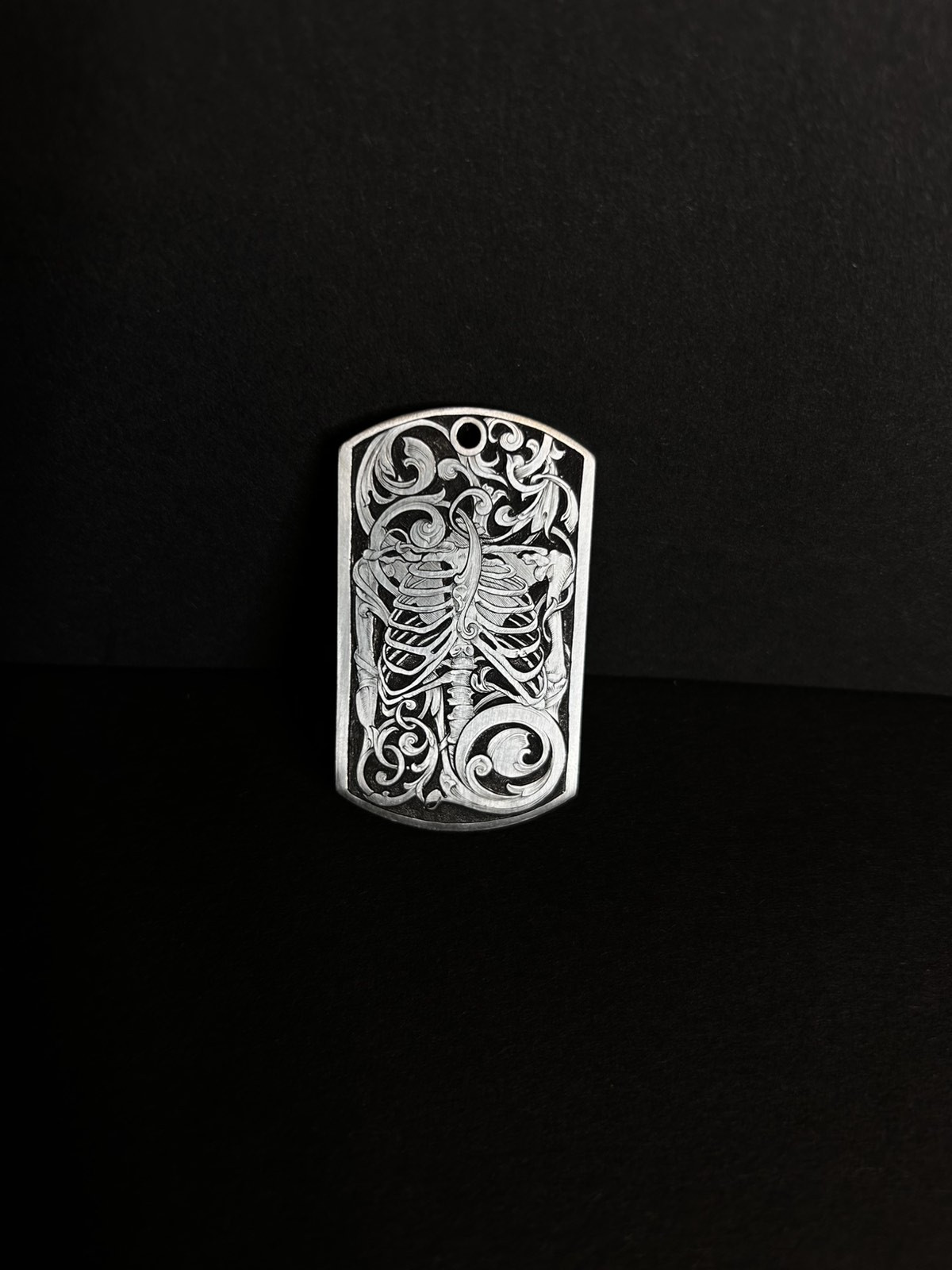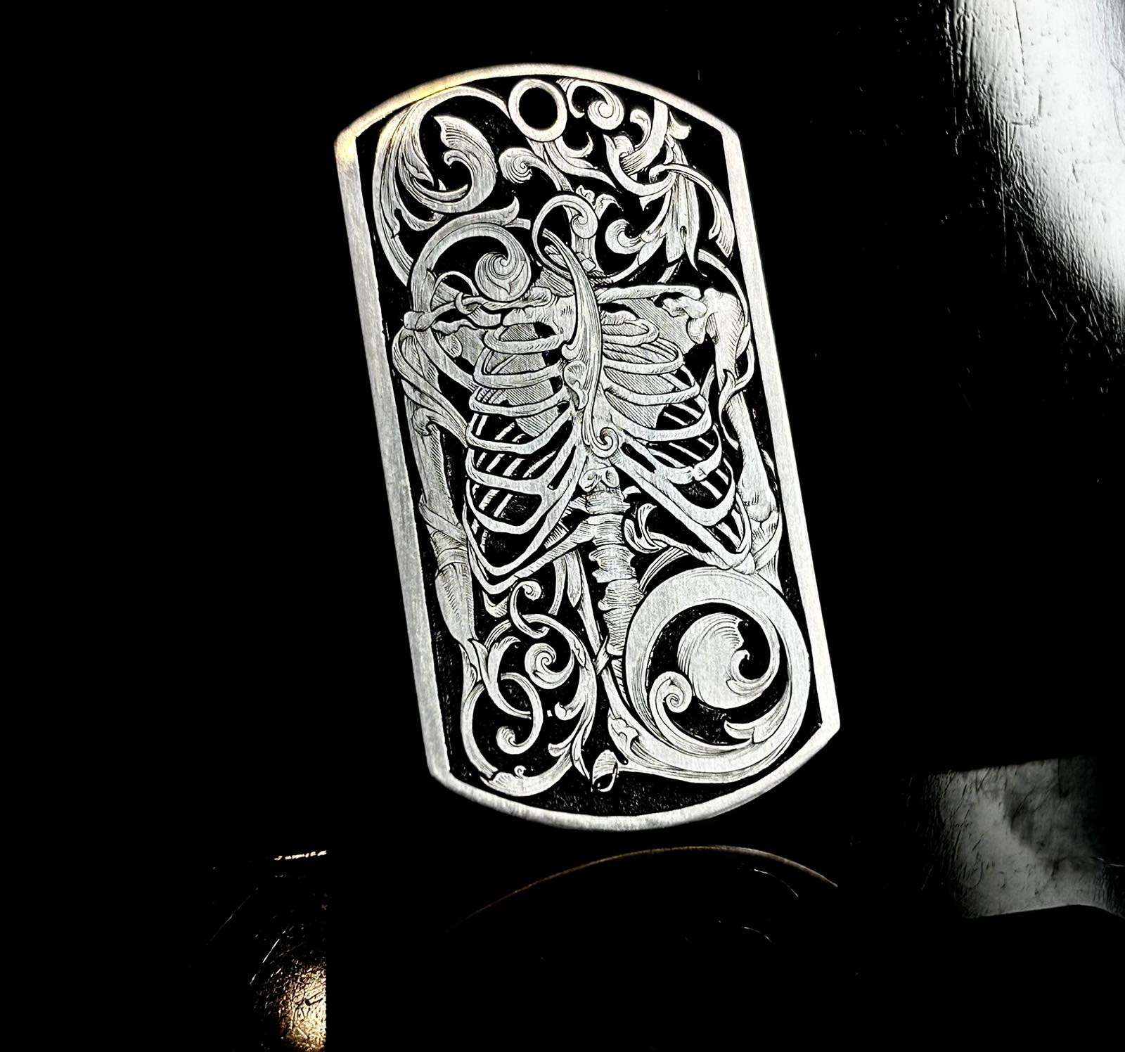 /Exclusive hand engraving pendant with scroll ornament and skeleton floral