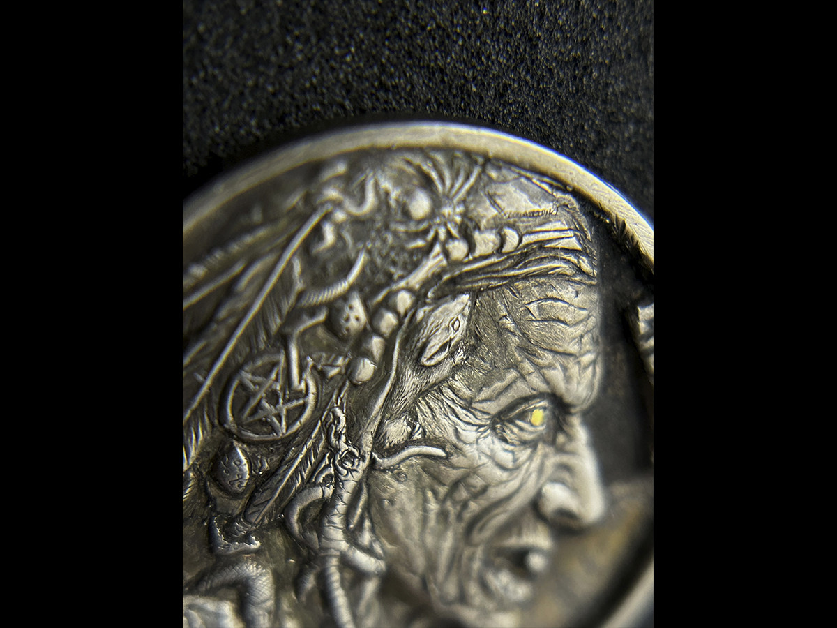 This exquisite coin is a true masterpiece, meticulously crafted with hand engraving. "The witch"