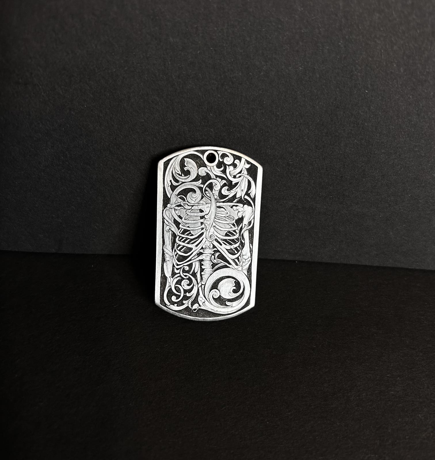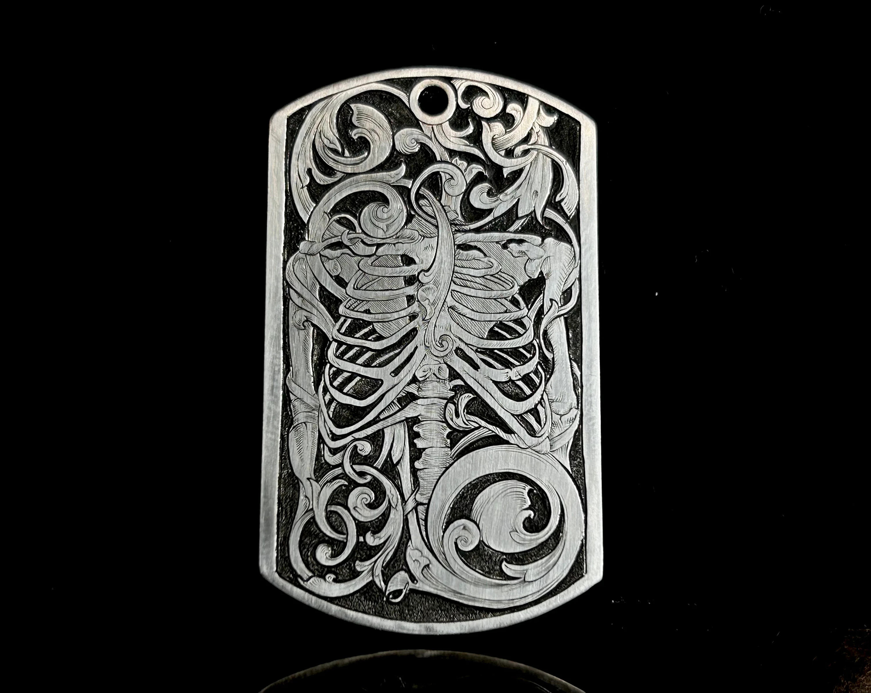 /Exclusive hand engraving pendant with scroll ornament and skeleton floral